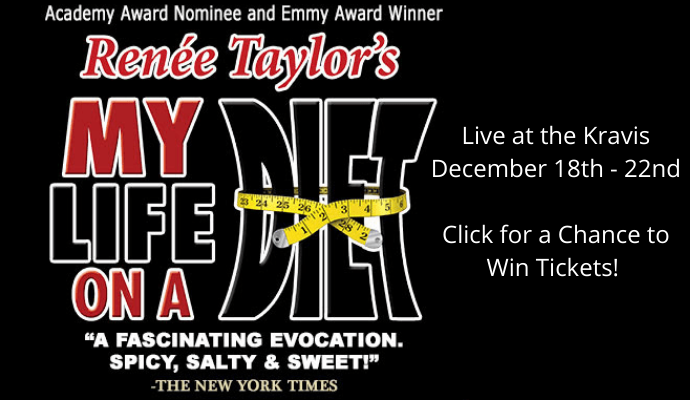 LAUGHS ARE ON THE MENU! AWARD WINNING WRITER AND ACTRESS RENEE TAYLOR STARS IN MY LIFE ON A DIET! LOOKING BACK ON A LIFE OF HOLLYWOOD ROLES AND FAD DIETS RENEE DISHES UP JUICY ANECDOTES AND HILARIOUS STORIES IN THIS LIGHT HEARTED SHOW... MY LIFE ON A DIET!...AT THE KRAVIS CENTER...WEDNESDAY THROUGH SUNDAY DECEMBER EIGHTEENTH THROUGH TWENTY SECOND!...YOU'LL LOSE THREE HUNDRED CALORIES LAUGHING!...THERE’S NOTHING LIKE LIVE…AT THE RINKER PLAYHOUSE…FOR TICKETS VISIT https://www.kravis.org/events/diet/